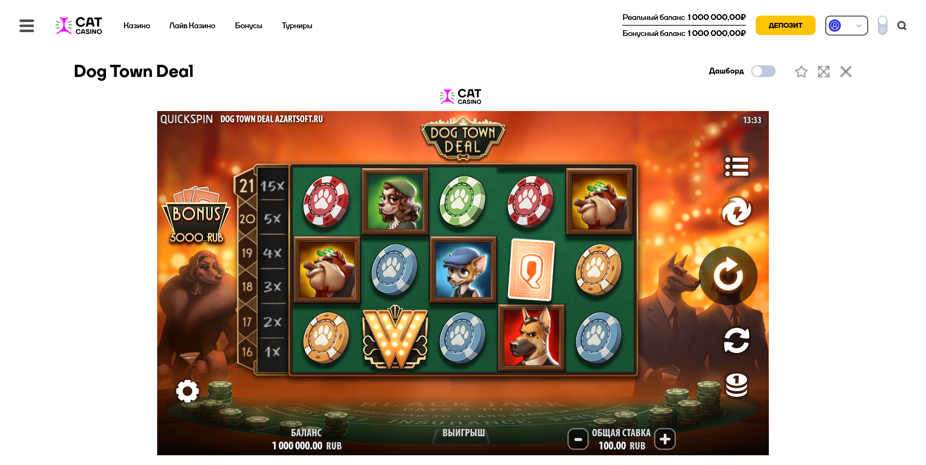 Данный скрипт представлен в оформлении оригинального сайта Cat Casino.